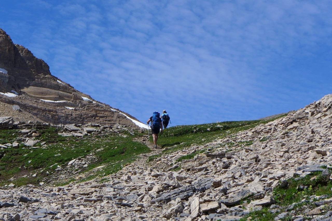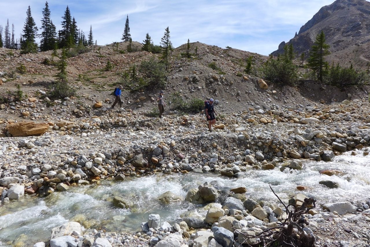 From there, follow the scree back down to the creek that drains from Kiwetinok Pass, cross this creek, and you’ll find the hiking trail back down to your campground.