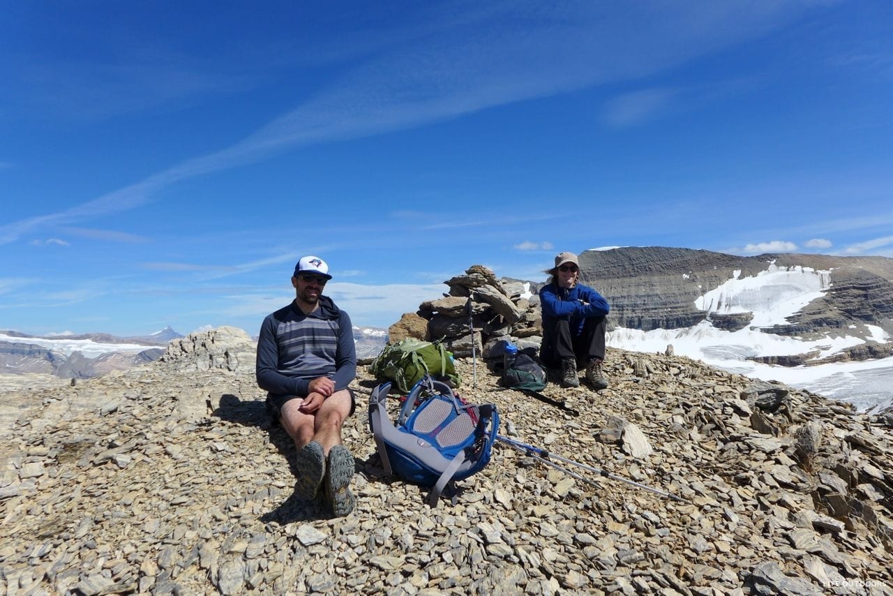 There are many other trails from Little Yoho that we didn’t explore this trip, but have explored on past trips. From Kiwetinok Lake you can have a three-peak day if you combine the ascents of Kiwetinok Peak, Mount Pollinger and Mount McArthur. Kiwetinok Peak is notoriously loose and very exposed so I would not recommend doing it, however Mount Pollinger is an easy ridge walk with a short fourth class (or lower fifth class) downclimb to continue on the ridge to Mount McArthur. Mount McArthur (9892′) is normally climbed by mountaineers from the east side, where you travel on a glacier, but the east side allows an easy ridge walk all the way up to the summit of this big mountain, with amazing views. Highly recommended!