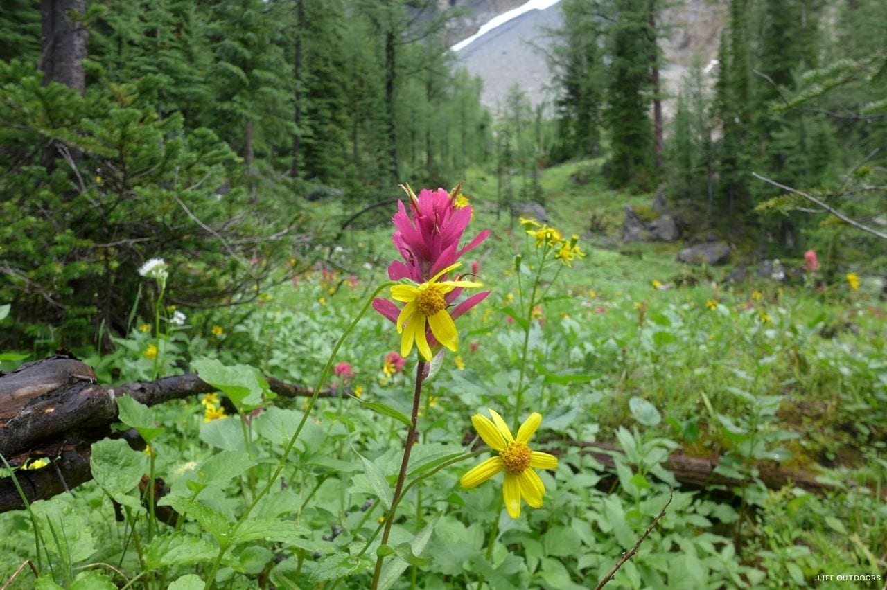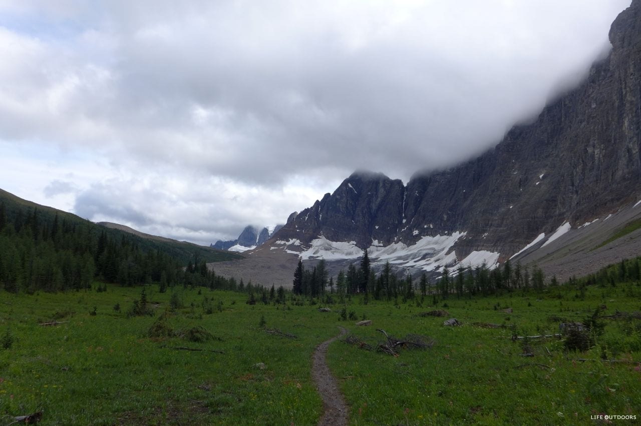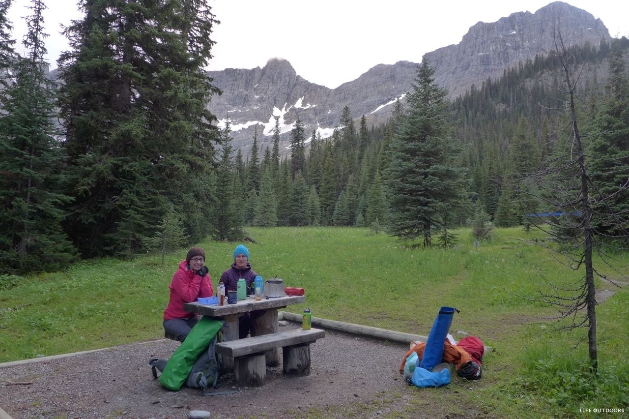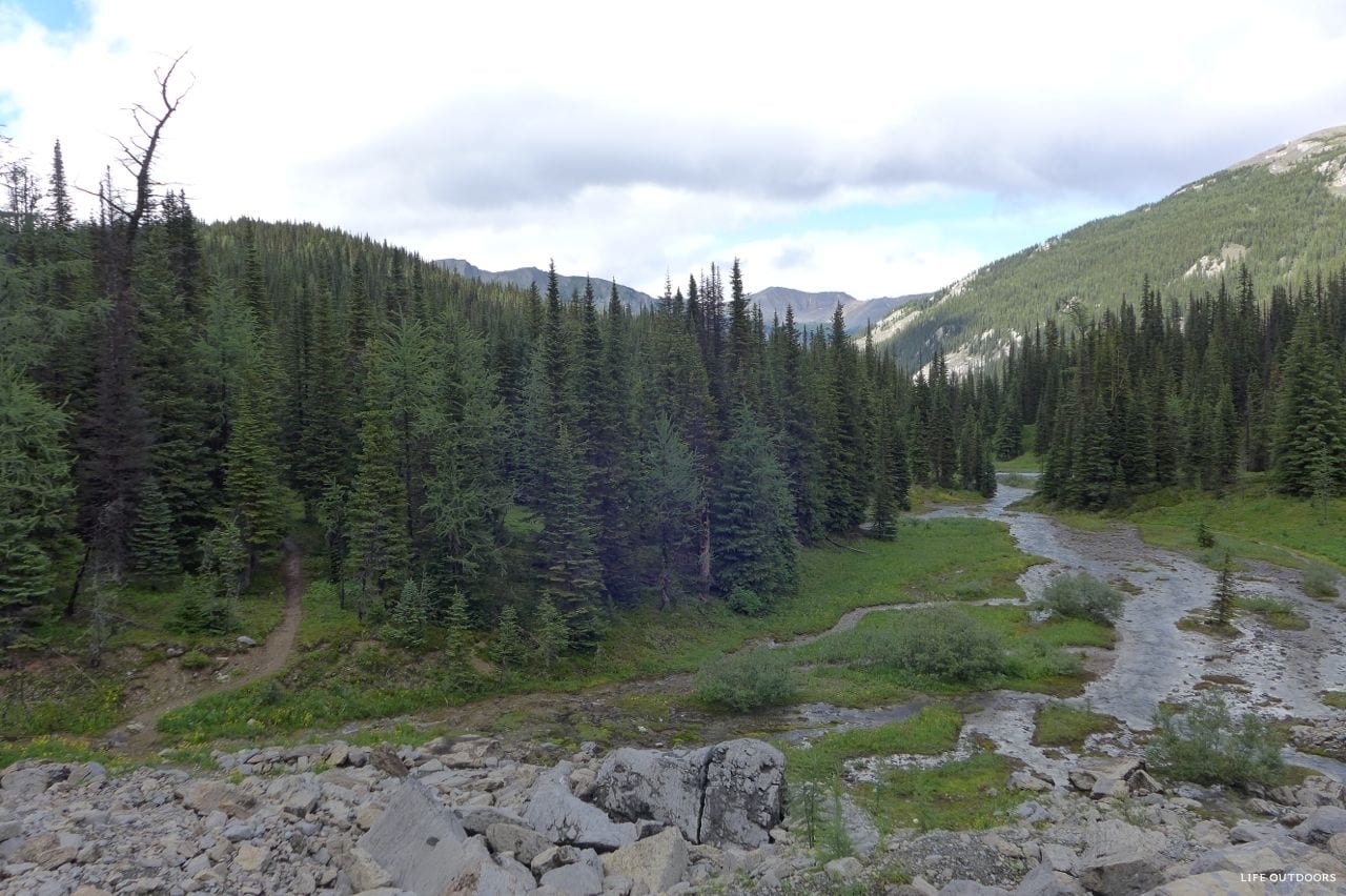 The trail can be done either North to South, or South to North. If you start from the South, you’ll start at Floe Lake trailhead, and hike out at Paint Pots trailhead. Most parties opt to start at Floe, and spend their last night at Helmet Falls. We hiked the trail from North to South.