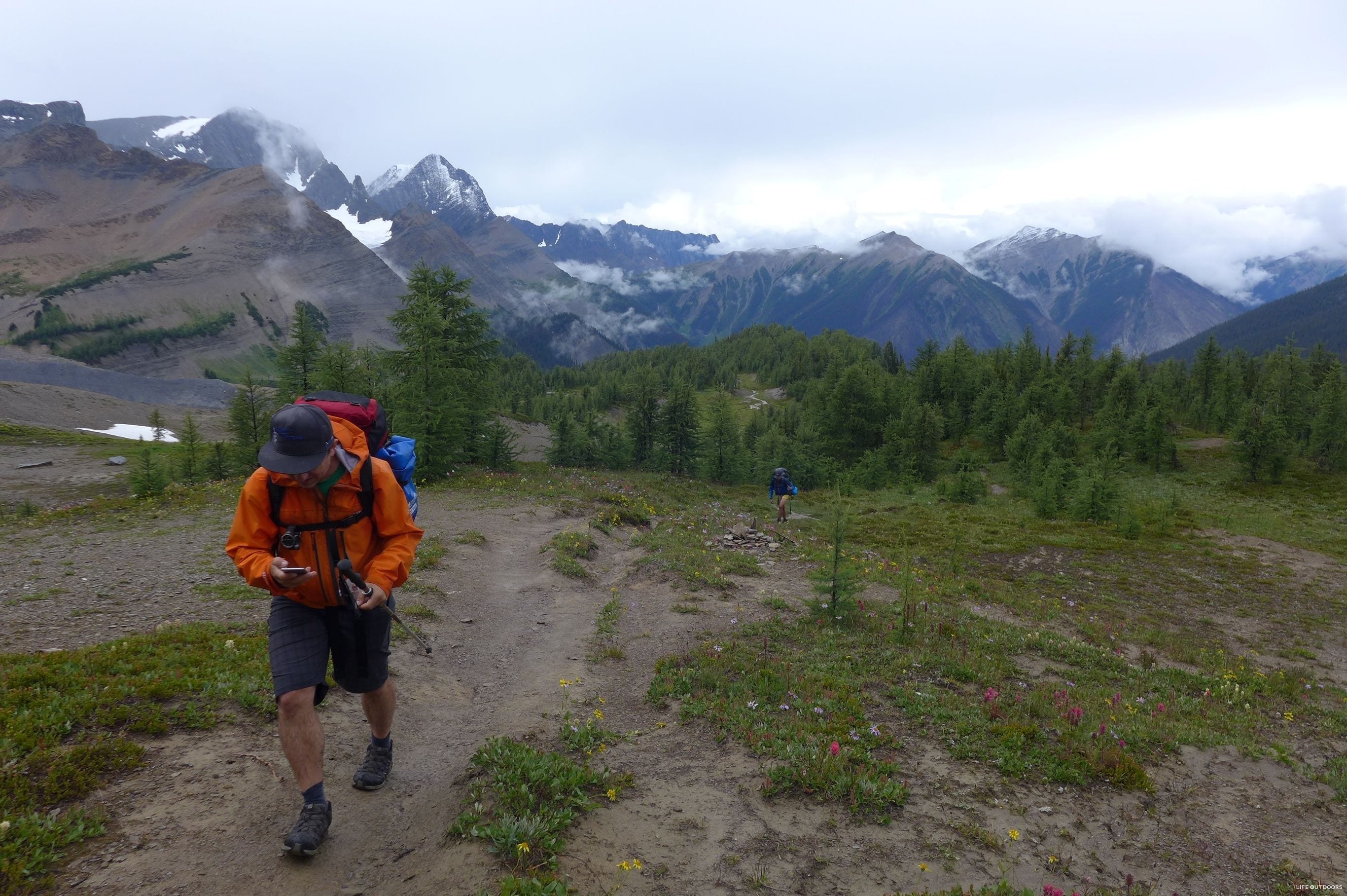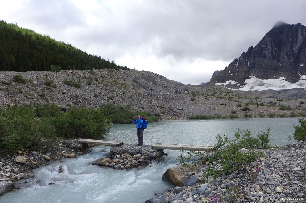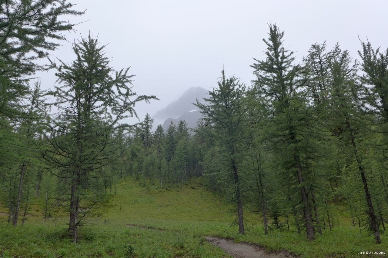 The trail is described here the way we hiked it, which is starting at Paint Pots and ending at Floe Lake Trailhead. We had a shaky forecast for our trip, which came true – it rained every day and every night, with some impressive, and very loud thunderstorms and hail! We managed through no problem, and will definitely be back another year hopefully to hike it in the sunshine. Regardless, unless the forecast calls for heavy snow, consider still doing the trip. If you’re looking for how to hike in rain, read our tips.