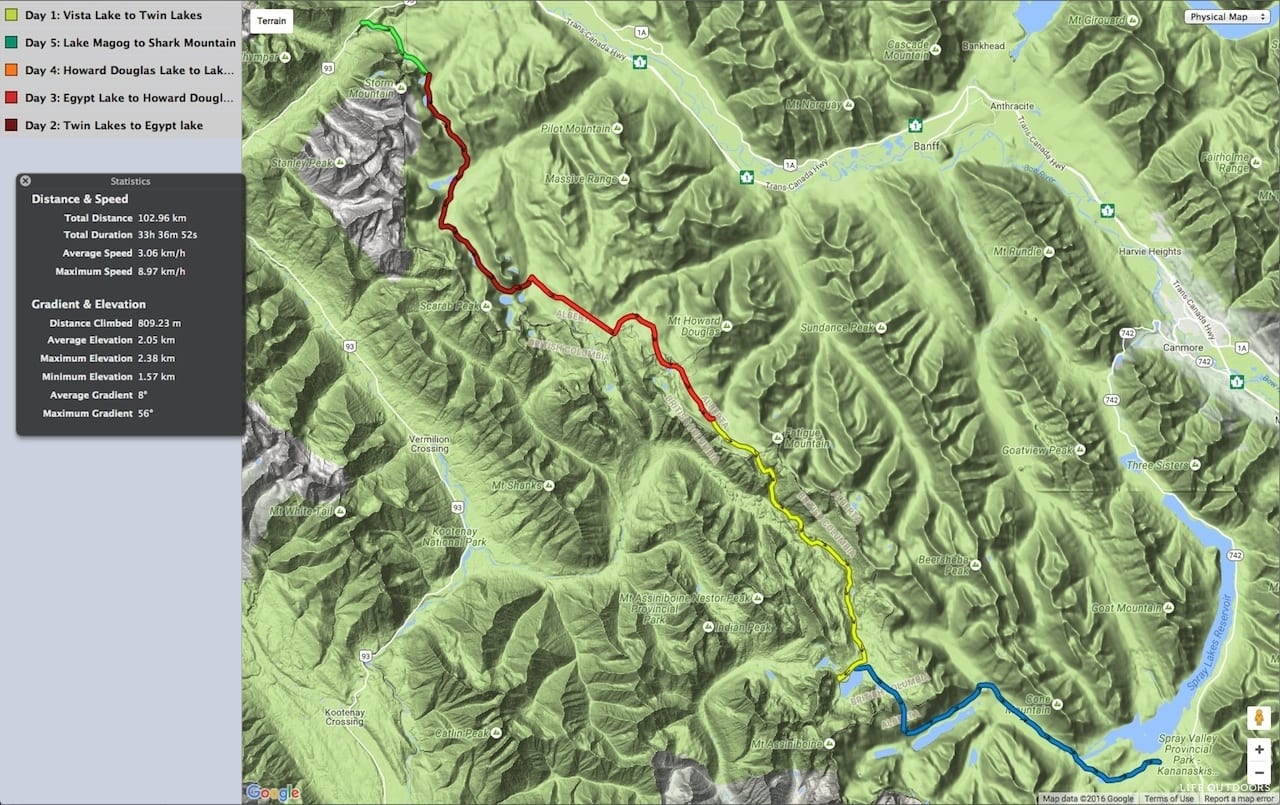Total Distance: 103 km (64 miles) | Elevation Gain: 3503 m (11,493 feet) | Elevation Loss: 3404 m (11,168 feet)