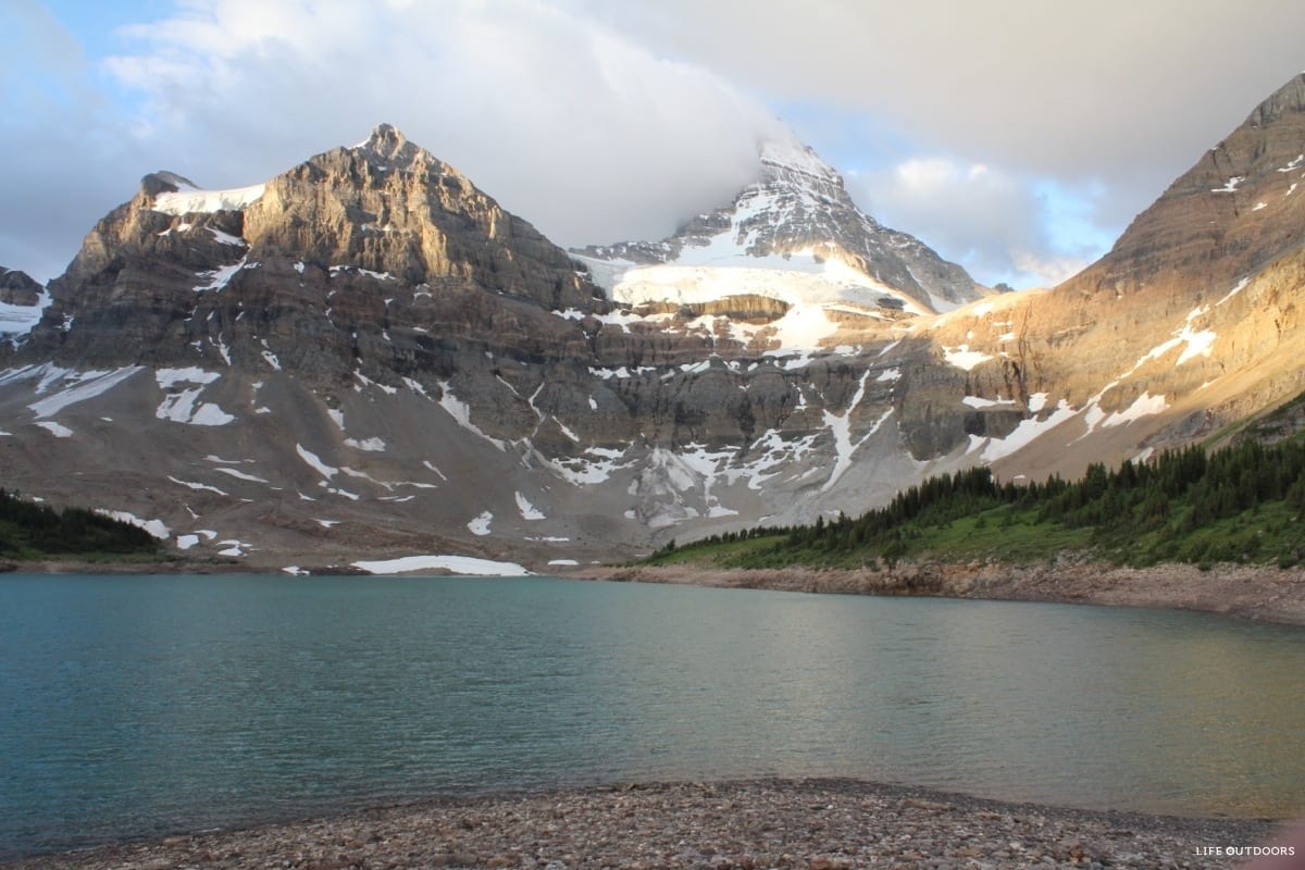 Everyone flocks to Magog lake because it’s right below Assiniboine and has the most impressive scenery of all. But it’s very crowded. The campground is first come first serve, so you really have to come in the very early afternoon to secure a spot. If not, you’ll end up in overflow (like us) and the overflow camping is completely packed with tents. There were about 40 tents alone in the small field designated for overflow.