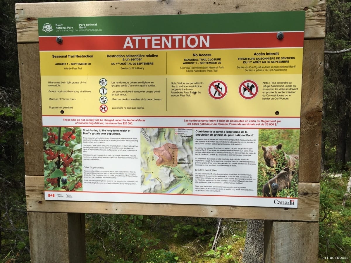 Your options to hike out of Assiniboine include Assiniboine pass (25 km) , Marvel pass (33 km), and Wonder pass (27 km). The quickest, and the least scenic is Assiniboine pass. However, you won’t be able to go this way unless you go before August 1 and have a group greater than four people. There is a seasonal trail closure in effect to give grizzly bears space during their busy feeding season of buffalo berries which ripen at this time. The bears are scrambling to put on weight for the winter at this time, before the night gets cold and vegetation wilts for the fall.