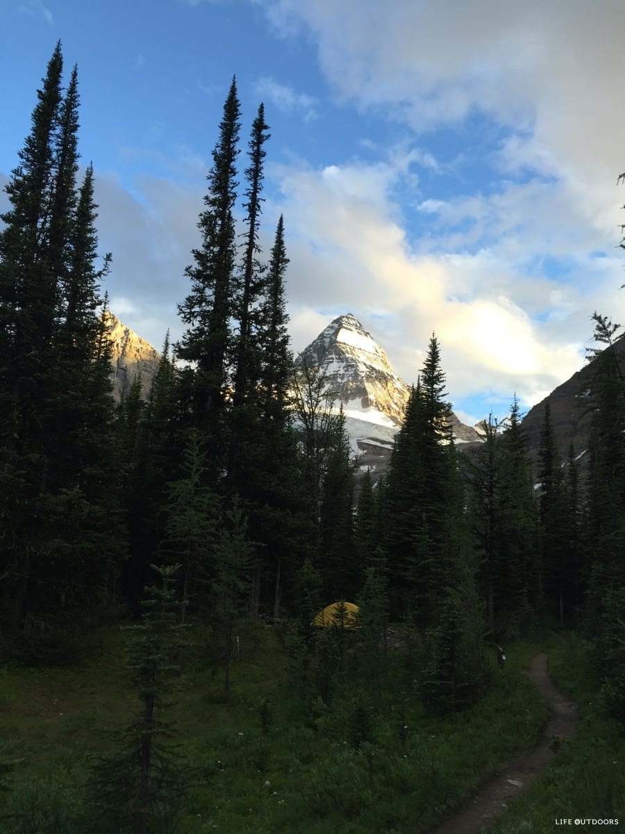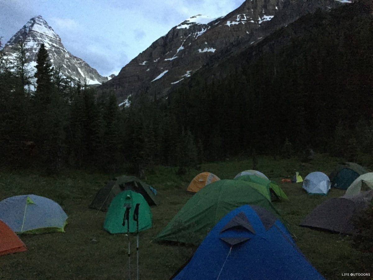 Everyone flocks to Magog lake because it’s right below Assiniboine and has the most impressive scenery of all. But it’s very crowded. The campground is first come first serve, so you really have to come in the very early afternoon to secure a spot. If not, you’ll end up in overflow (like us) and the overflow camping is completely packed with tents. There were about 40 tents alone in the small field designated for overflow.