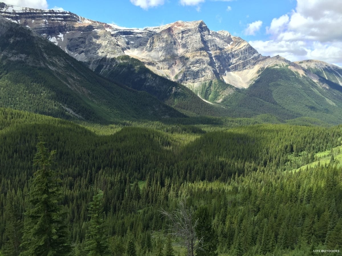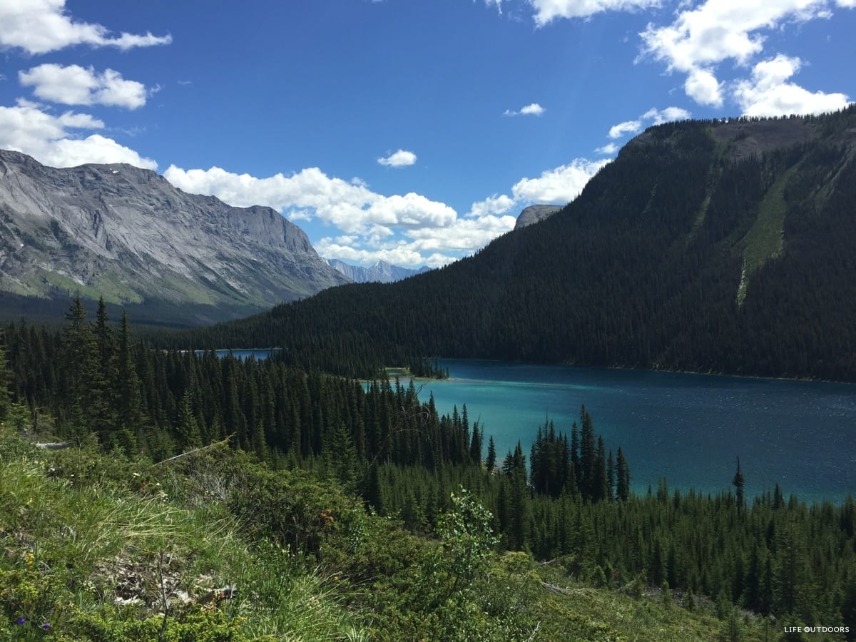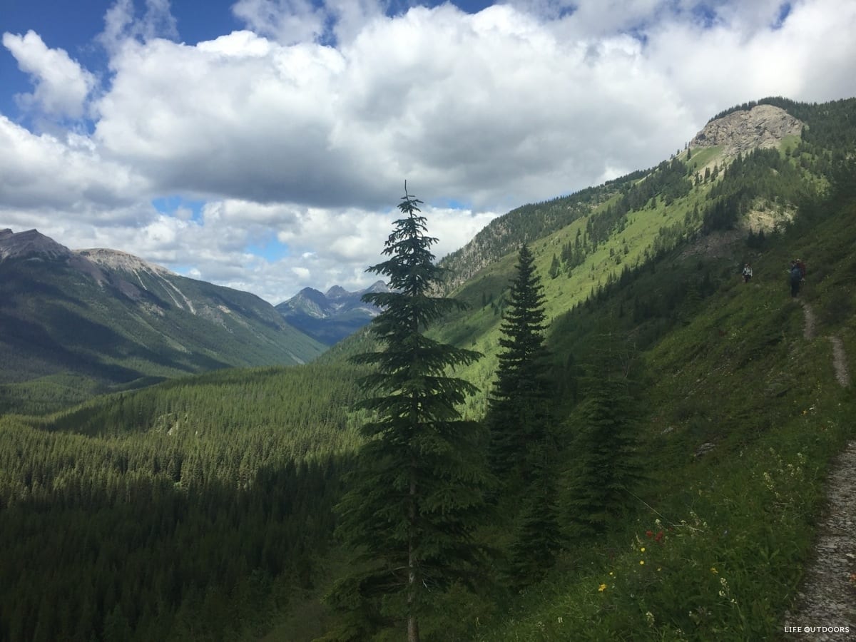 After going past Rock Isle lake, you continue for several kilometers on open alpine meadows with great, unobstructed views in all directions. This is a great spot for wildlife. Look out for Grizzly bears – you might see one here from far away.