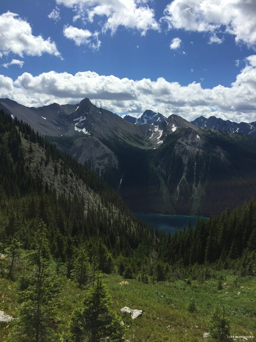 Once you hit just above Og Lake, you’ll finally be rewarded with water and a closer view of Mount Assiniboine. Og lake campground is really nice and open, and when it’s hot, you can brave the cold waters for a swim. It was hot on our hike and we were quite dehydrated so we were tempted to jump in! It’s worth a stop. In hindsight, we wished we had spent the night at Og lake, it’s not busy and well worth a visit.