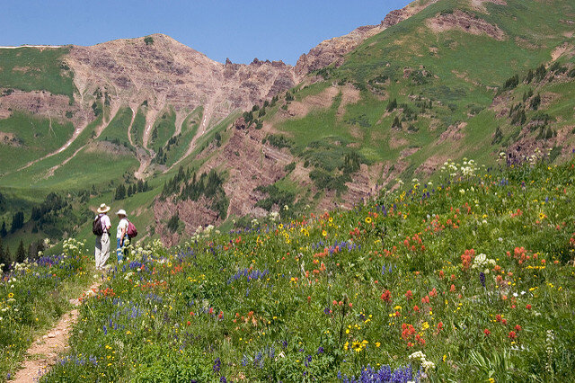 Flowers: Lupine, phlox, aspen bluebells, Indian paintbrush, Colorado columbines, sunflowers, among others