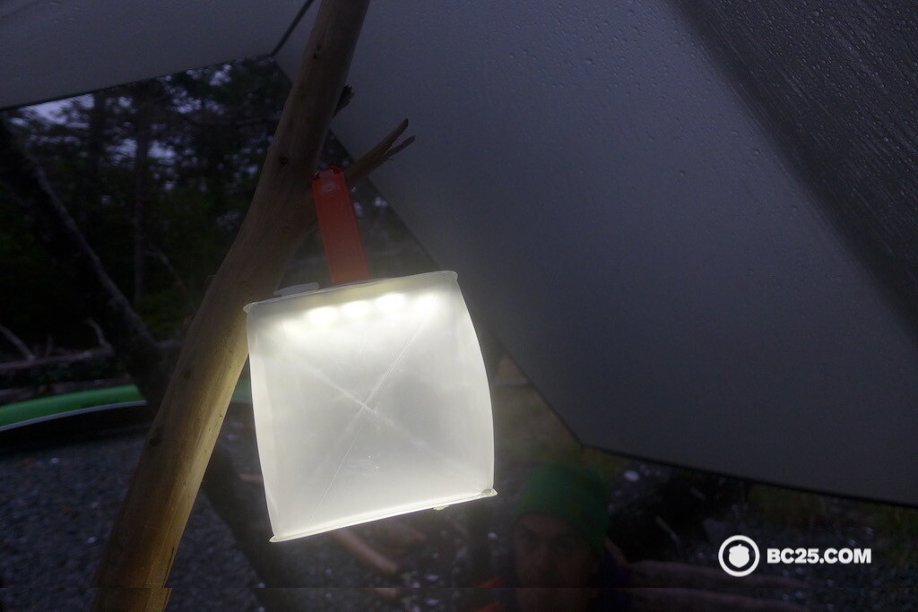 This is a great backcountry camping item, car camping item, or emergency light. Take it camping, keep it in the car, or keep it at home in case the lights go out. We tested the until while canoeing on the remote islands of Haida Gwaii, and found this is great to have for canoe or kayak camping, and great in the rain as well. It’s recommended for wet and stormy weather.