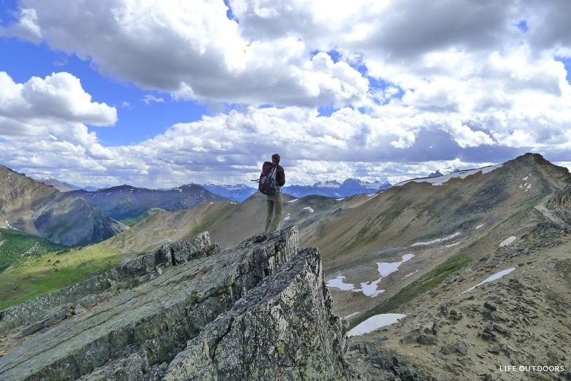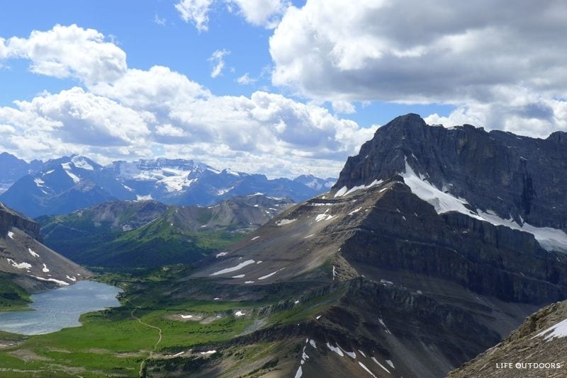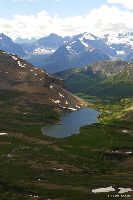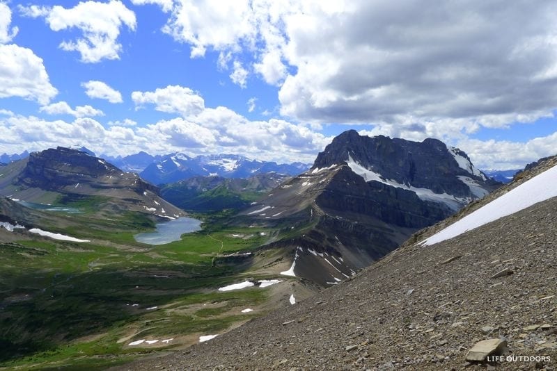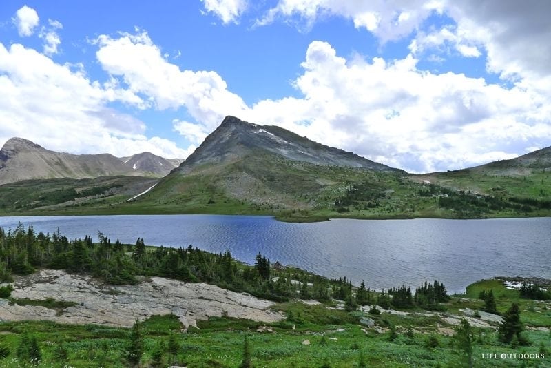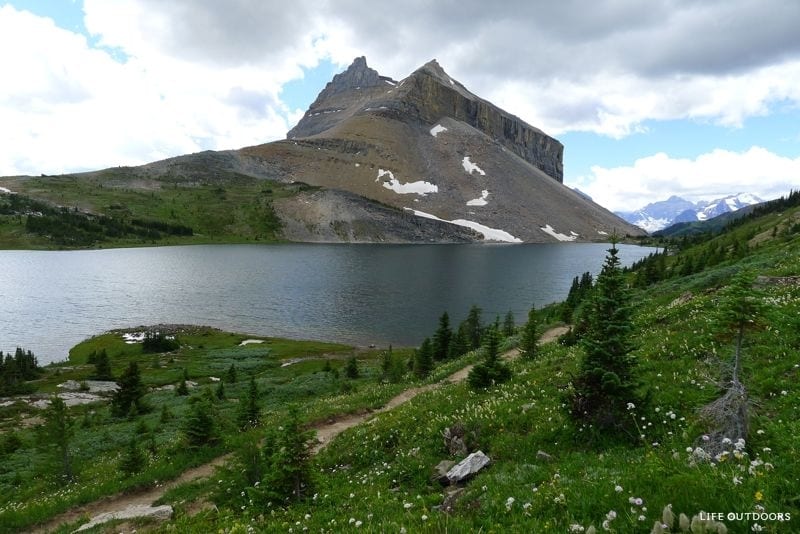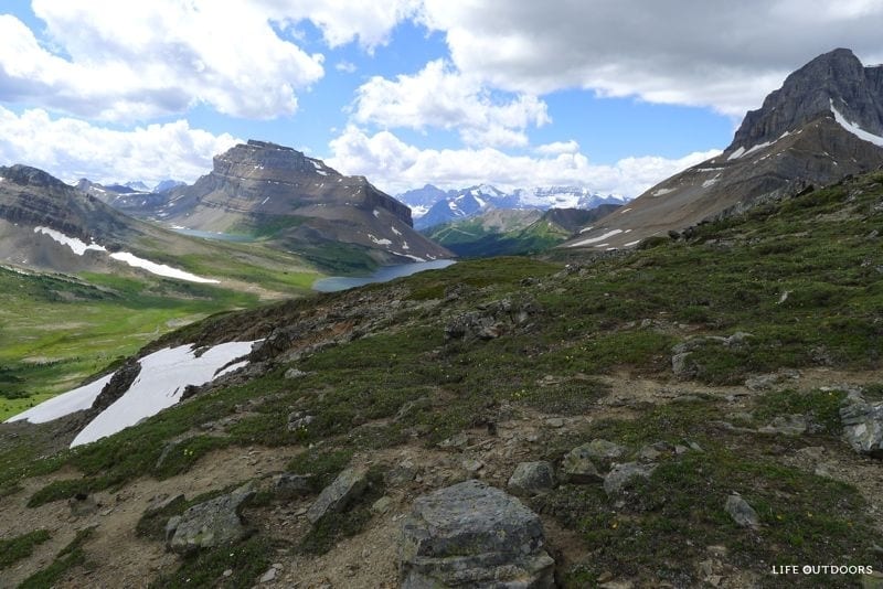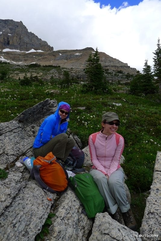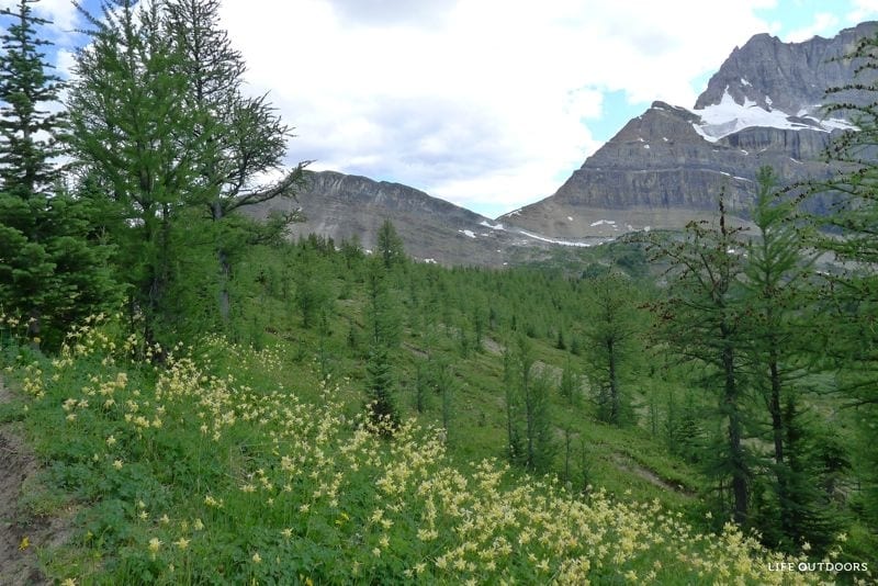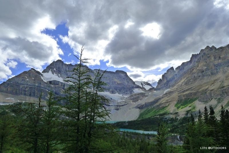 The hidden lakes campsite is a fast walk-in from Lake Louise. It is only 9 km, and takes around 2 hours. It makes it an easy place to get to if you can’t go in the morning, you can easily hike in here in the afternoon and still have lots of time to hang out and have dinner, and you can get up early and be ready to explore.