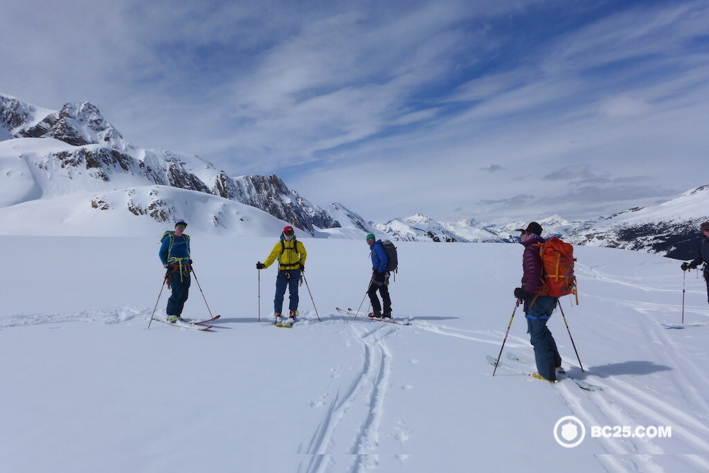Skiing the Kokanee glacier in Kokanee Glacier Provincial Park in BC.