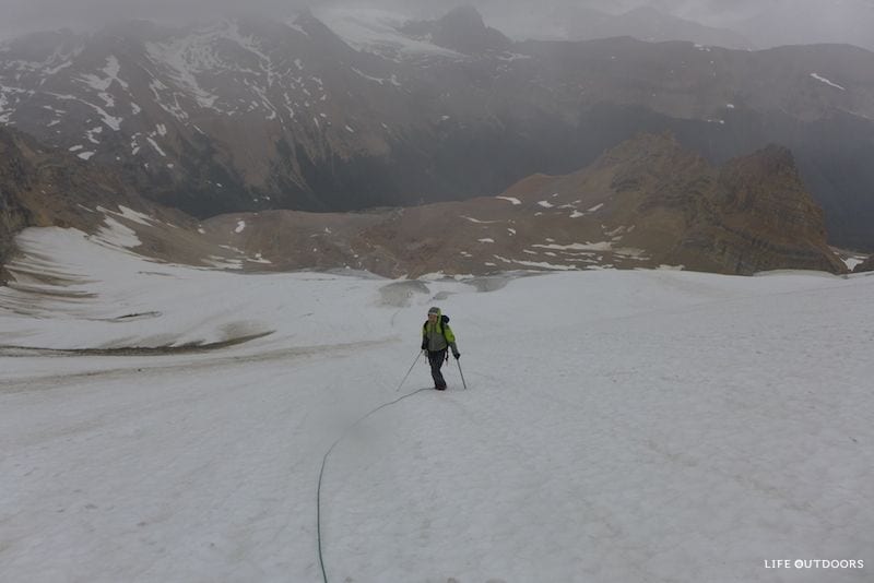 Mountaineers increase safety by starting on snow and glaciers before the sun hits the slope. Freeze thaw cycles occur causing the snow to warm up, causing avalanche danger as water seeps through and weakens snow layers. In the morning, the snow is still frozen from the night before and makes for easy travel as well. No postholing.